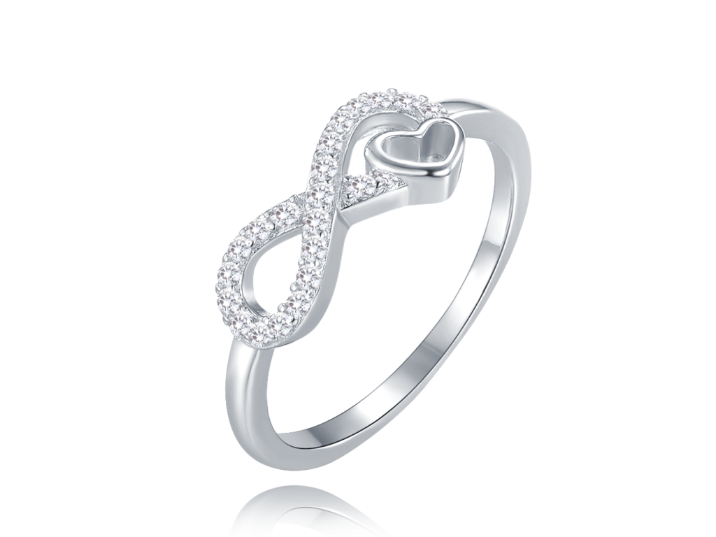 MINET Stříbrný prsten nekonečno se srdíčkem a bílými zirkony vel. 59