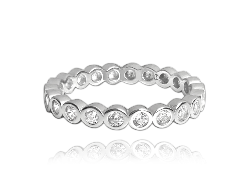 MINET Stříbrný prsten s bílými zirkony vel. 55