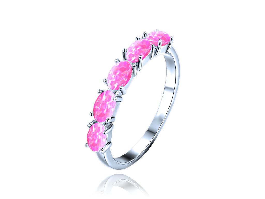 MINET Stříbrný prsten s růžovými opálky vel. 58