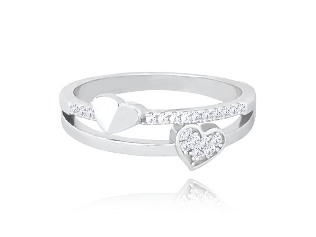 MINET Stříbrný srdíčkový prsten LOVE se zirkony vel. 50