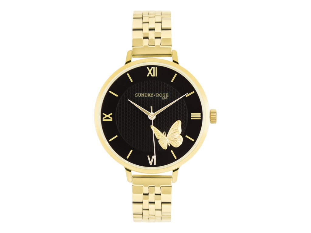 Temně černý ciferník, lesk zlata a plastický motýl, který jako by se chystal vzlétnout – dámské hodinky Sunday Rose SUN-F24 jsou dokonalým symbolem sebevědomé ženskosti. Kombinace černé a zlaté vytváří dojem luxusu, který nepůsobí okázale, ale s jemnou noblesou a smyslem pro detail.