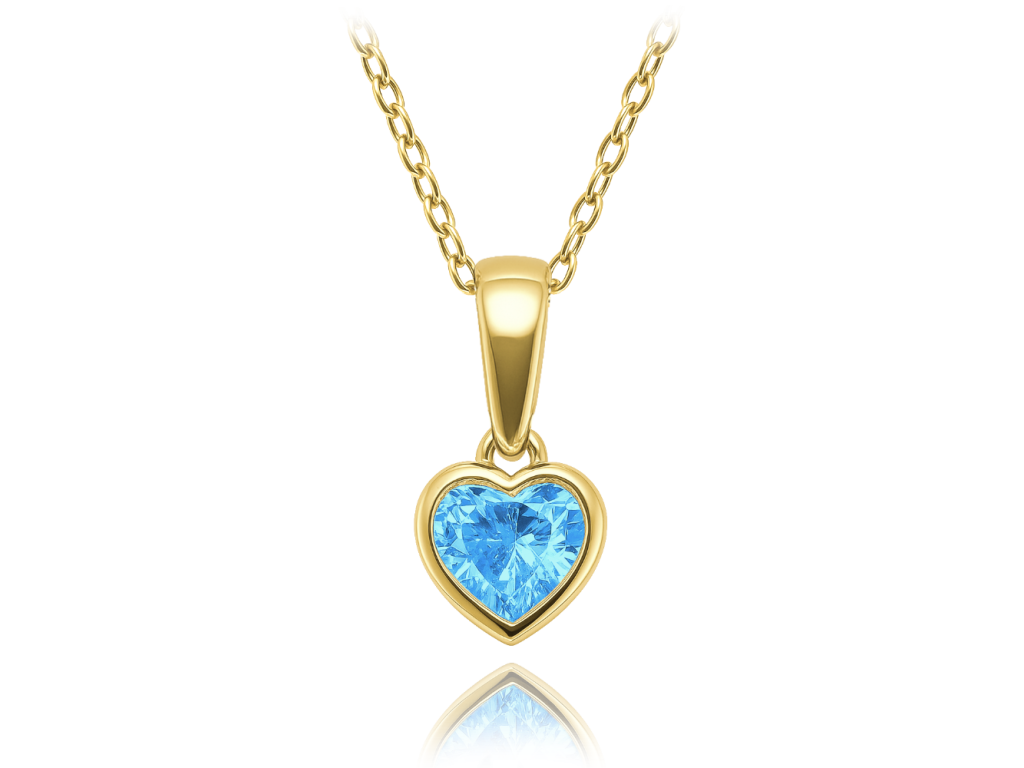 MINET Dětský zlatý náhrdelník srdíčko s modrým zirkonem Au 585/1000 1,85g