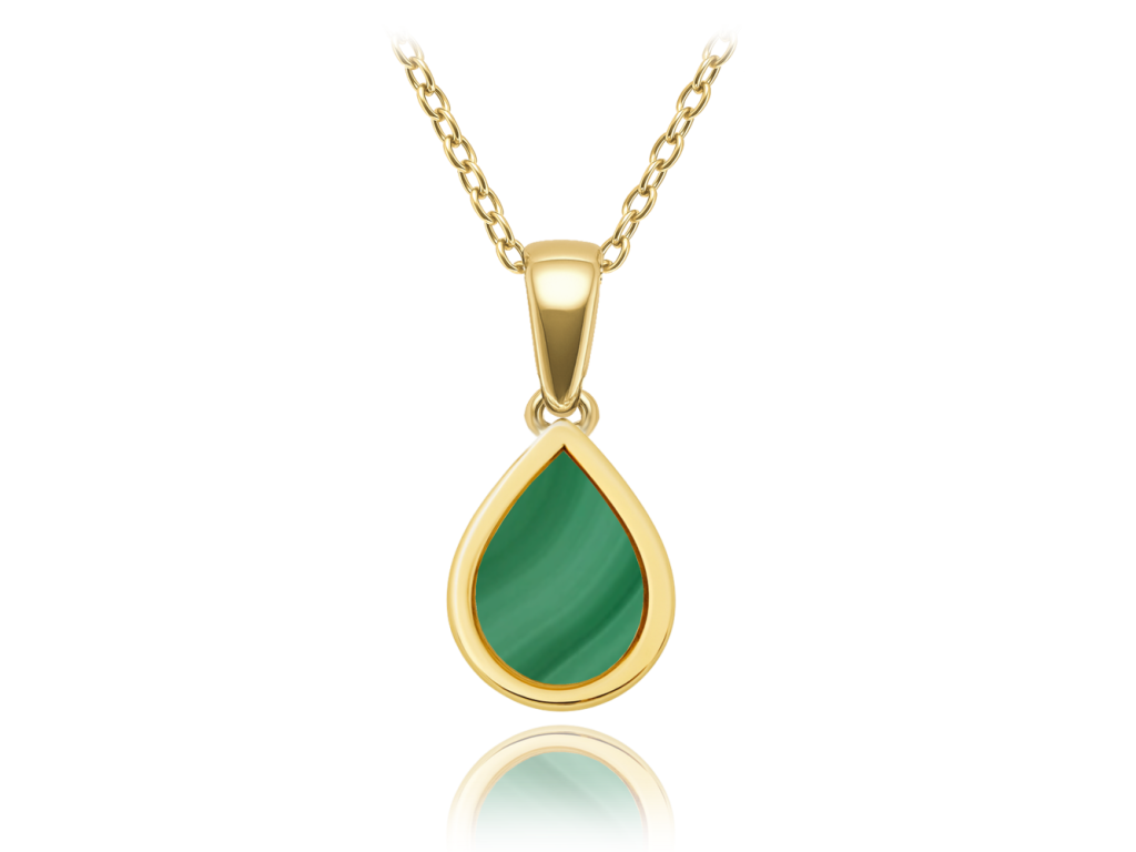 MINET Elegantní zlatý náhrdelník kapka se zeleným malachitem Au 585/1000 2,20g