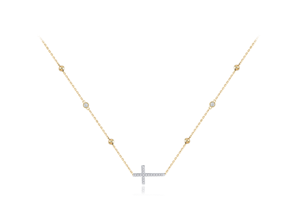 MINET Zlatý náhrdelník křížek s bílými zirkony Au 585/1000 3,90g