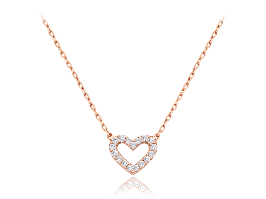 MINET Zlatý náhrdelník srdce z růžového zlata s bílými zirkony Au 585/1000 1,55g