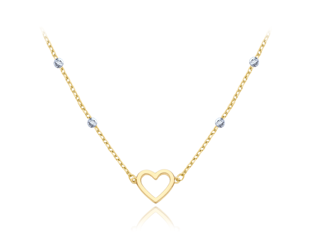 MINET Zlatý náhrdelník srdíčko v kombinaci bílého a žlutého zlata Au 585/1000 1,50g
