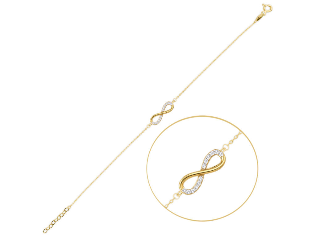 MINET Elegantní zlatý náramek nekonečno s bílými zirkony Au 585/1000 1,15g