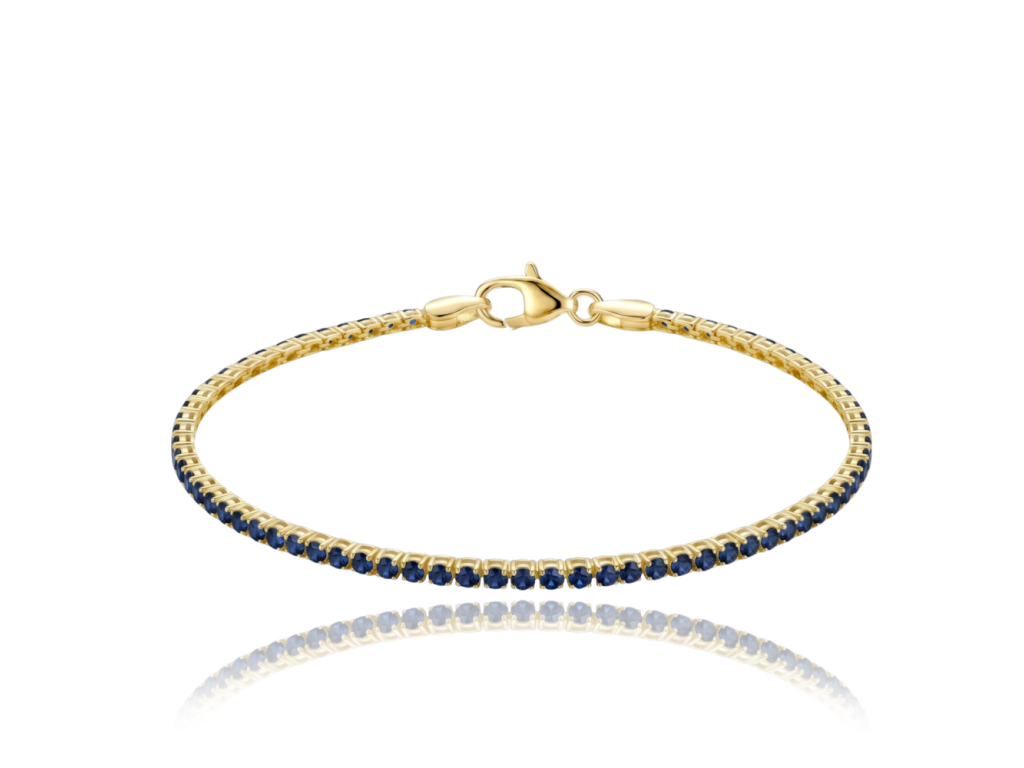 MINET Elegantní zlatý tenisový náramek s modrými zirkony Au 585/1000 1,75g