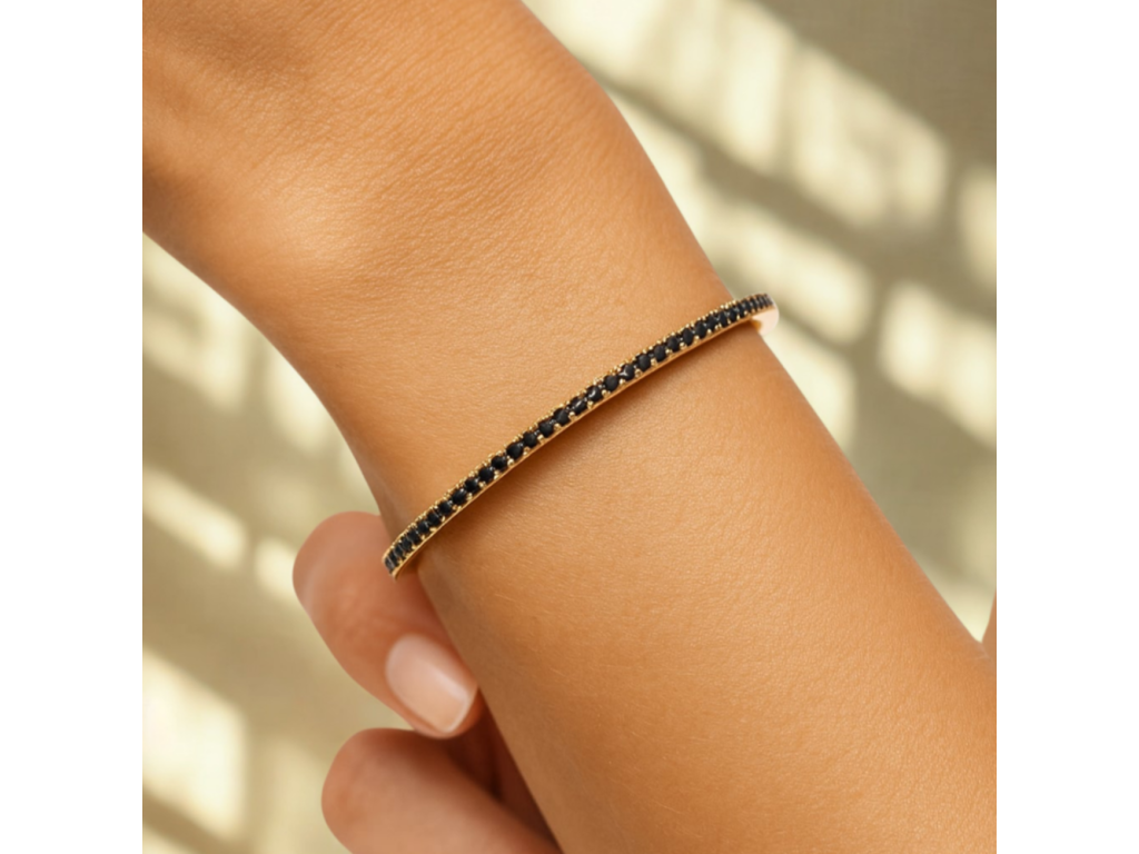 Luxusní zlatý náramek s černým zirkonem z pravého 14karátového zlata upoutá kontrastem barvy a lesku. Elegantní doplněk pro ženy, které hledají originalitu. Šperky jsou opatřeny puncem potvrzujícím ryzost 585/1000. Pociťte sílu sebevědomí, které vám dodají zlaté šperky české značky MINET. Vyzdvihněte svůj osobitý styl a dopřejte si pocit výjimečnosti, díky kterému bude váš outfit dokonalý.Doplňkové parametry