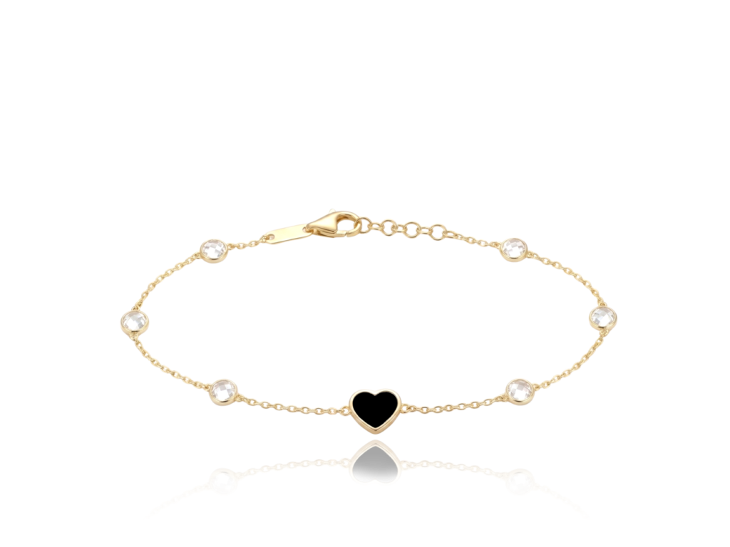 MINET Zlatý náramek srdíčko s onyxem a bílými zirkony Au 585/1000 1,65g