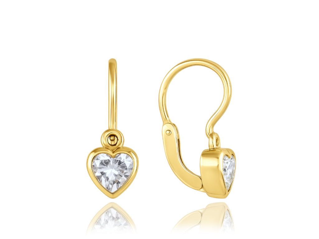 MINET Dětské zlaté náušnice s předním zapínáním srdíčka s bílými zirkony Au 585/1000 1,15g