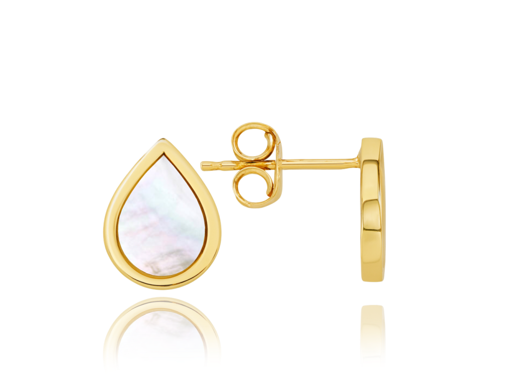 MINET Elegantní zlaté náušnice kapka s bílou perletí Au 585/1000 1,65g