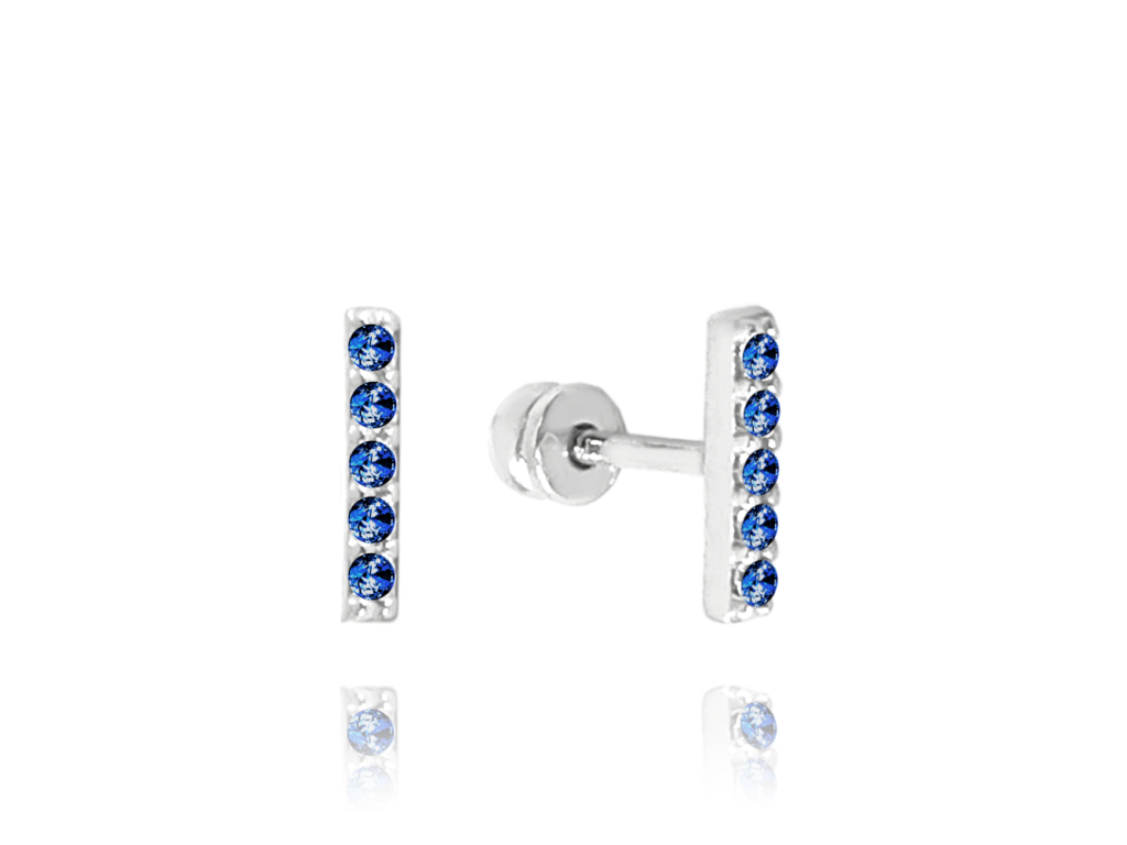 MINET Elegantní zlaté náušnice na šroubek z bílého zlata s tmavě modrými zirkony Au 585/1000 1,00g