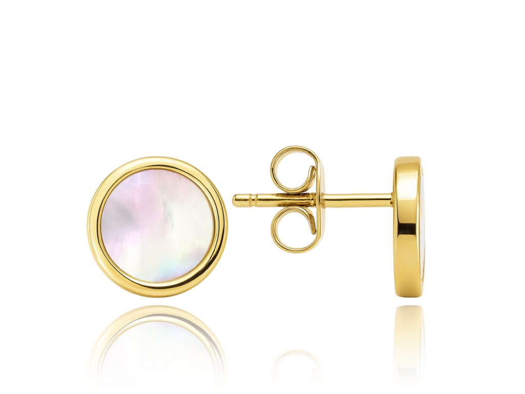 MINET Elegantní zlaté náušnice s bílou perletí Au 585/1000 1,55g