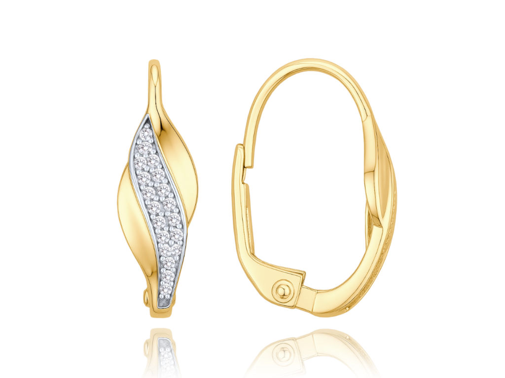 MINET Elegantní zlaté náušnice s bílými zirkony Au 585/1000 2,15g