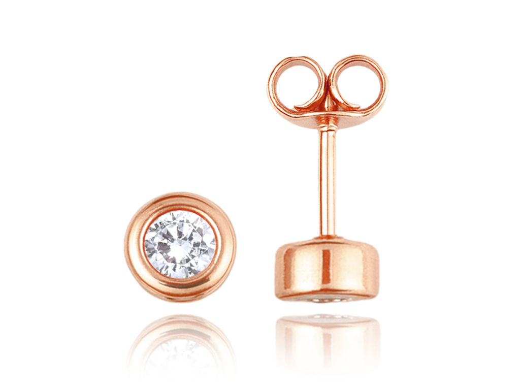MINET Elegantní zlaté náušnice z růžového zlata s bílými zirkony Au 585/1000 1,35g