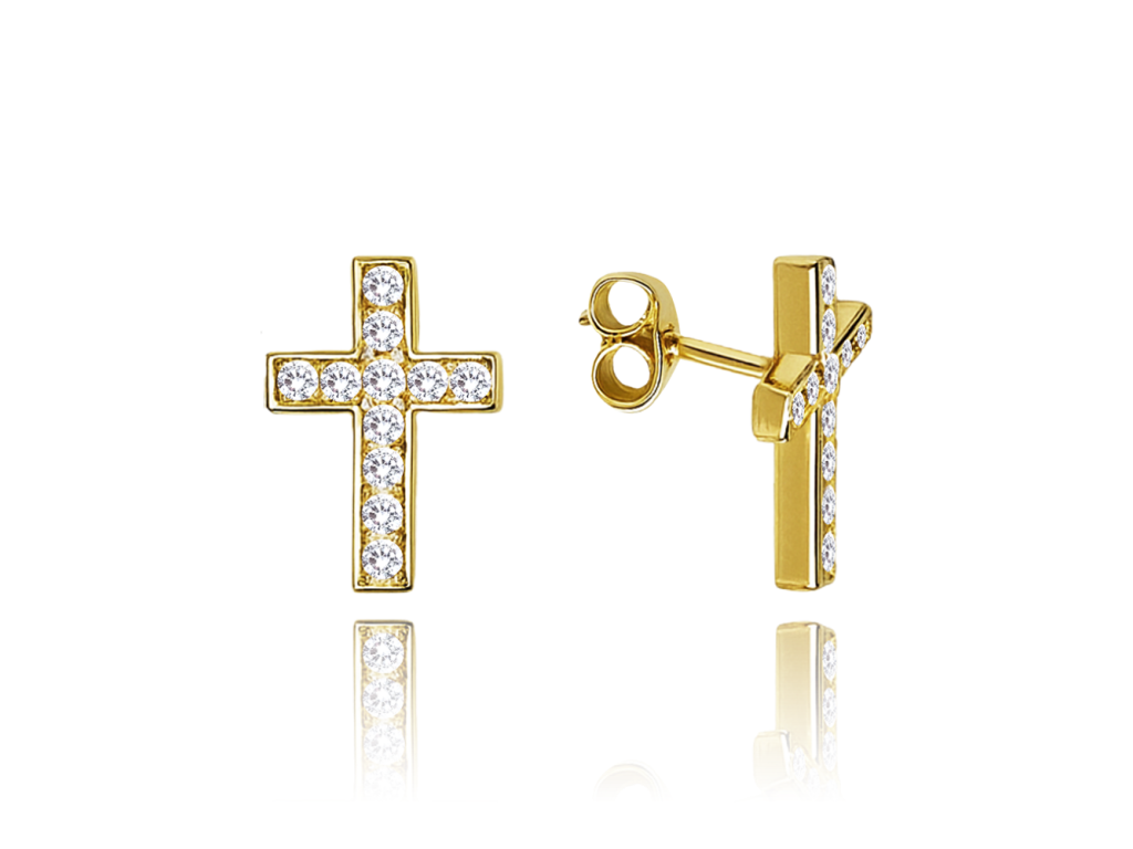 MINET Luxusní zlaté náušnice křížky s bílými zirkony Au 585/1000 1,10g