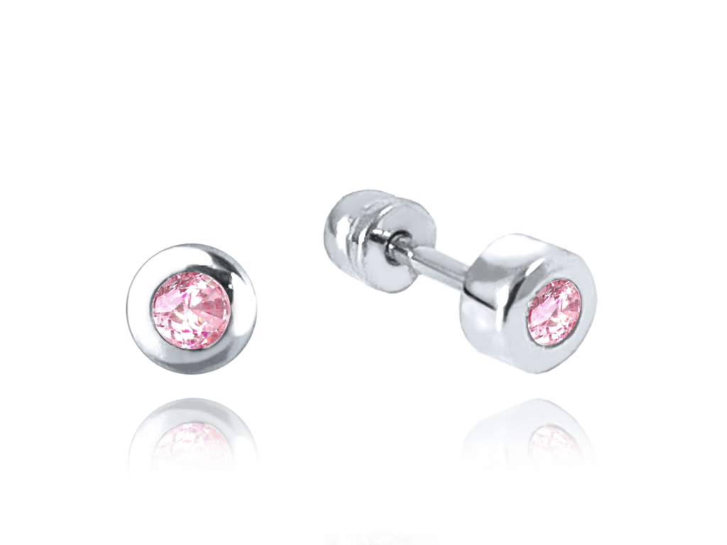 MINET Náušnice na šroubek z bílého zlata s růžovými zirkony Au 585/1000 1,15g