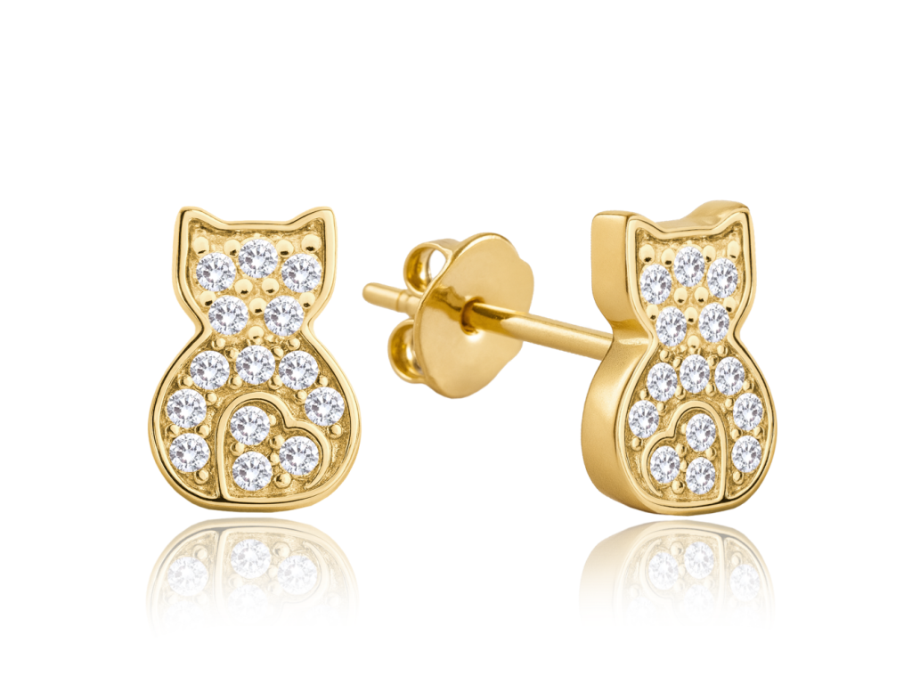 MINET Zlaté náušnice kočky s bílými zirkony Au 585/1000 1,20g