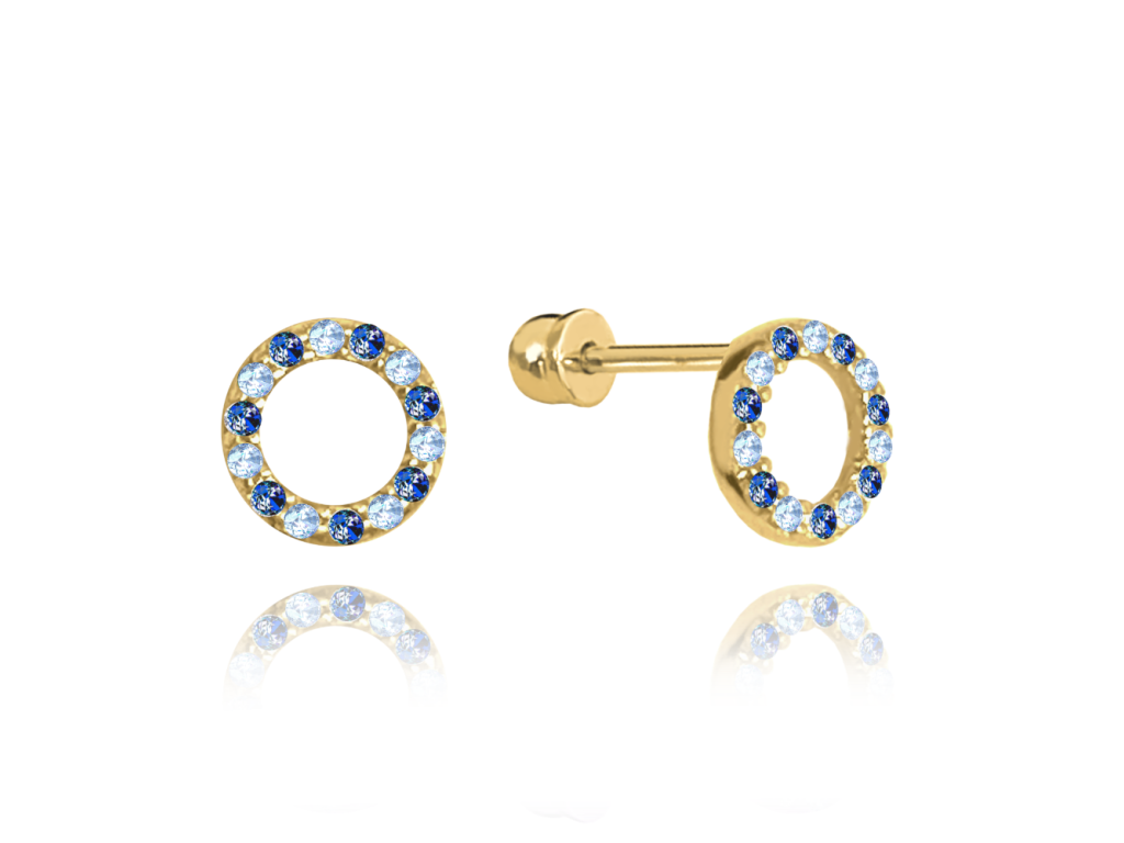 MINET Zlaté náušnice na šroubek se světle a tmavě modrými zirkony Au 585/1000 1,35g