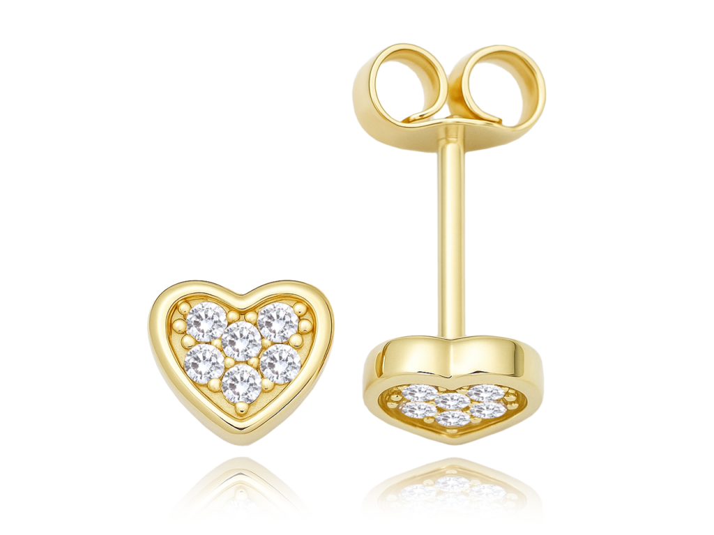 MINET Zlaté náušnice srdce s bílými zirkony Au 585/1000 0,95g
