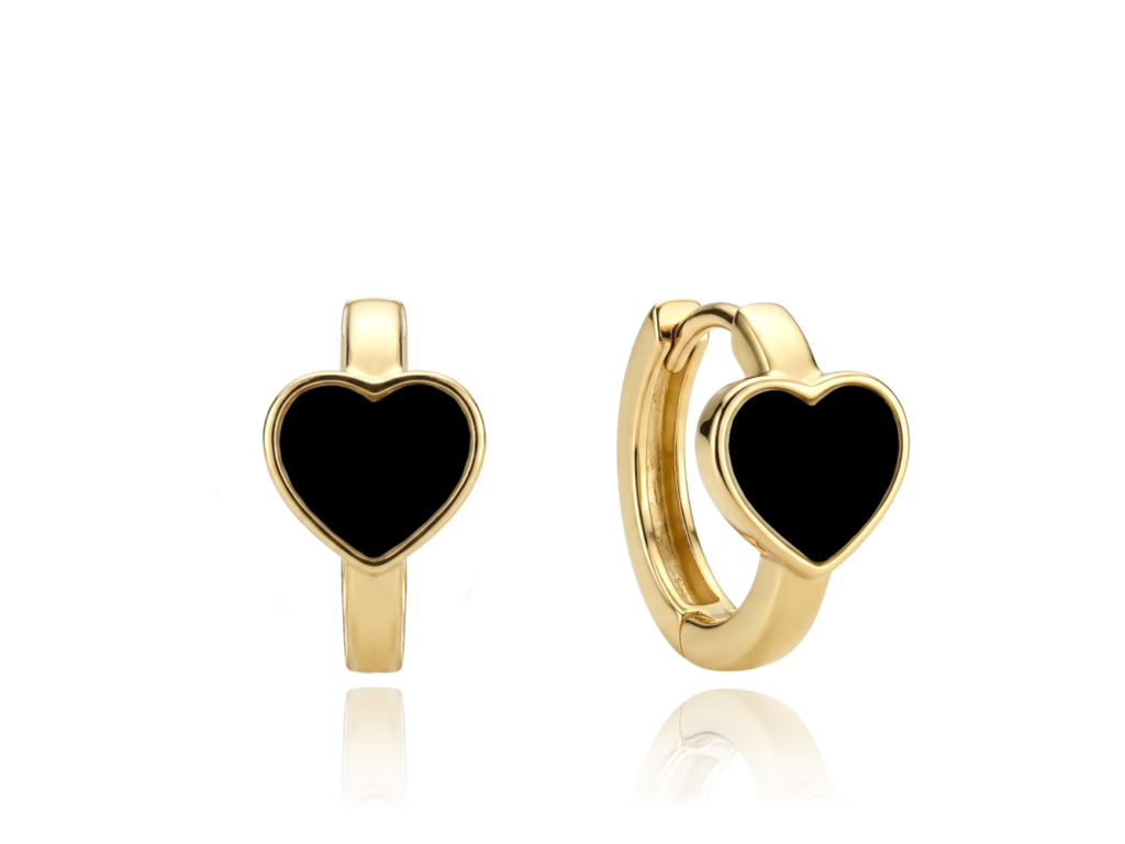 MINET Zlaté náušnice srdíčka s onyxem Au 585/1000 2,45g