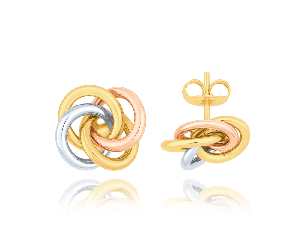 MINET Zlaté trojbarevné náušnice uzlíky Au 585/1000 2,15g