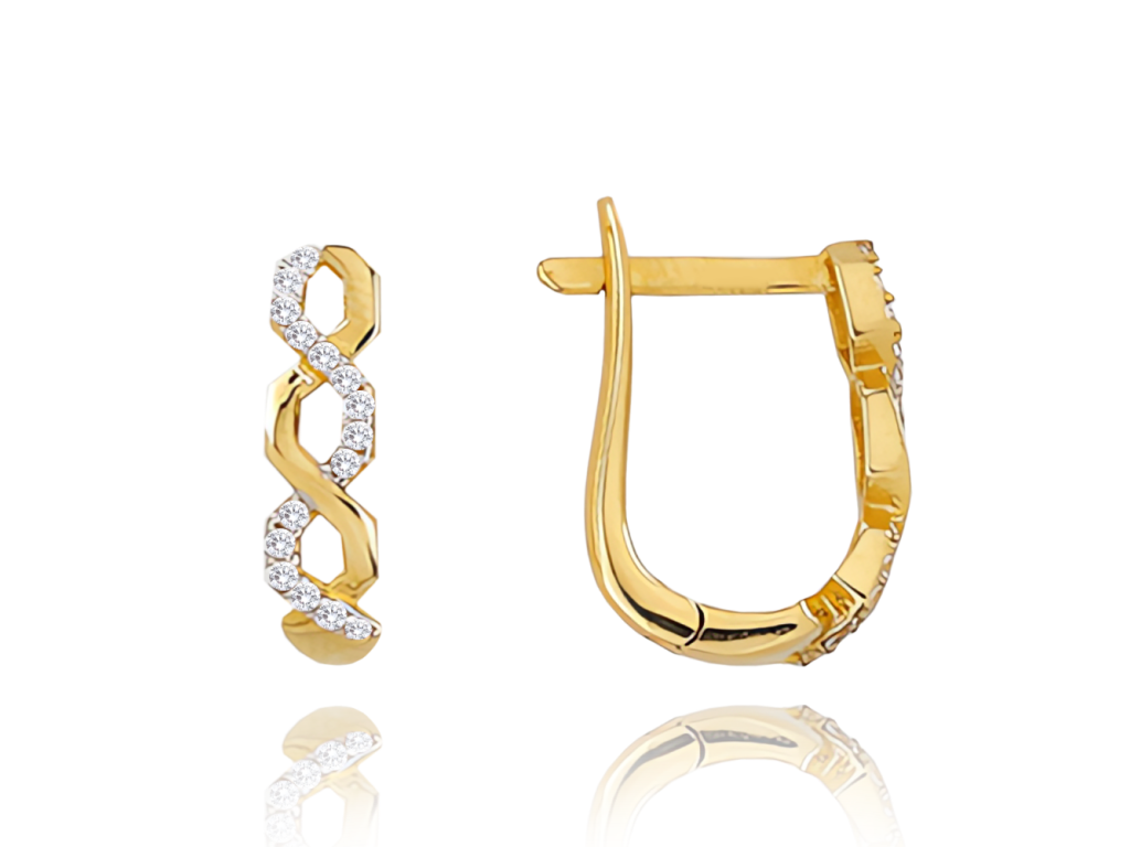 MINET Zlaté zapletené náušnice s bílými zirkony Au 585/1000 2,10g