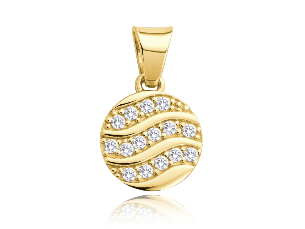 MINET Elegantní zlatý přívěsek kolečko s bílými zirkony Au 585/1000 1,10g