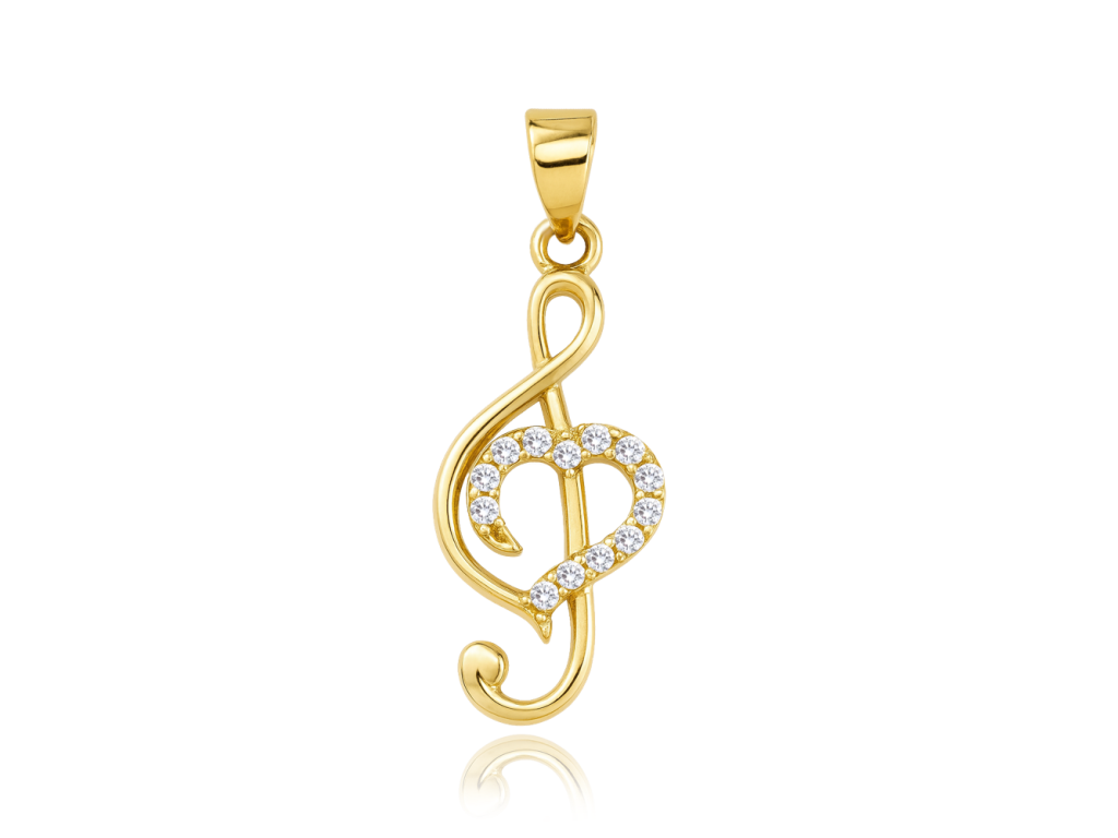 MINET Zlatý přívěs houslový klíč se srdcem a bílými zirkony Au 585/1000 0,95g
