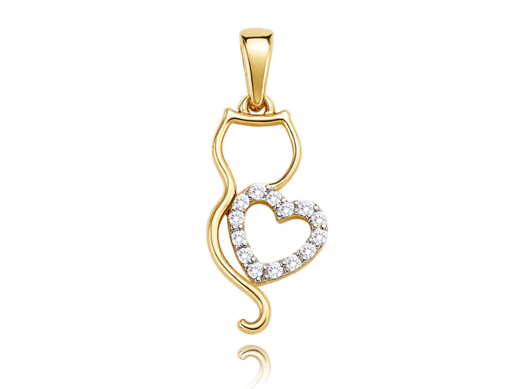 MINET Zlatý přívěs kočka se srdíčkem s bílými zirkony Au 585/1000 0,70g