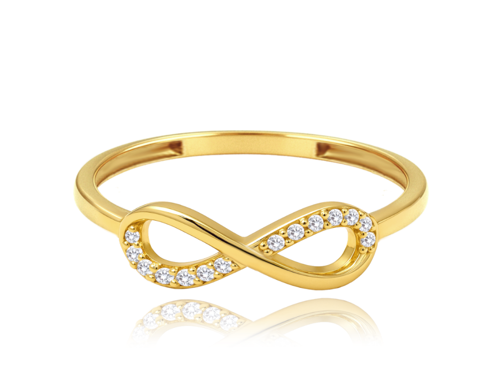 MINET Elegantní zlatý prsten nekonečno s bílými zirkony Au 585/1000 vel. 55 - 0,90g