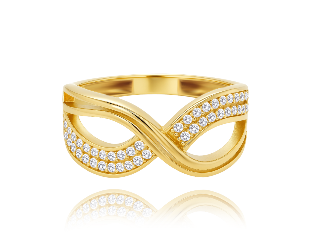 Moderní prsten z pravého 14karátového zlata s bílými zirkony. Prsten je vhodný pro každodenní nošení i zvláštní příležitosti. Kvalitního zpracování si všimnete hned po prvním nošení. Česká značka šperků a náramkových hodinek MINET vznikla v roce 2017 a na tvorbě doplňků se podílejí 3 sestry. Sbírají inspiraci doma i v zahraničí a přinášejí na trh stříbrné a zlaté šperky, které jsou jiné a dodávají osobitost jednoduchému outfitu i sebevědomí ženě, která je nosí.Doplňkové parametry