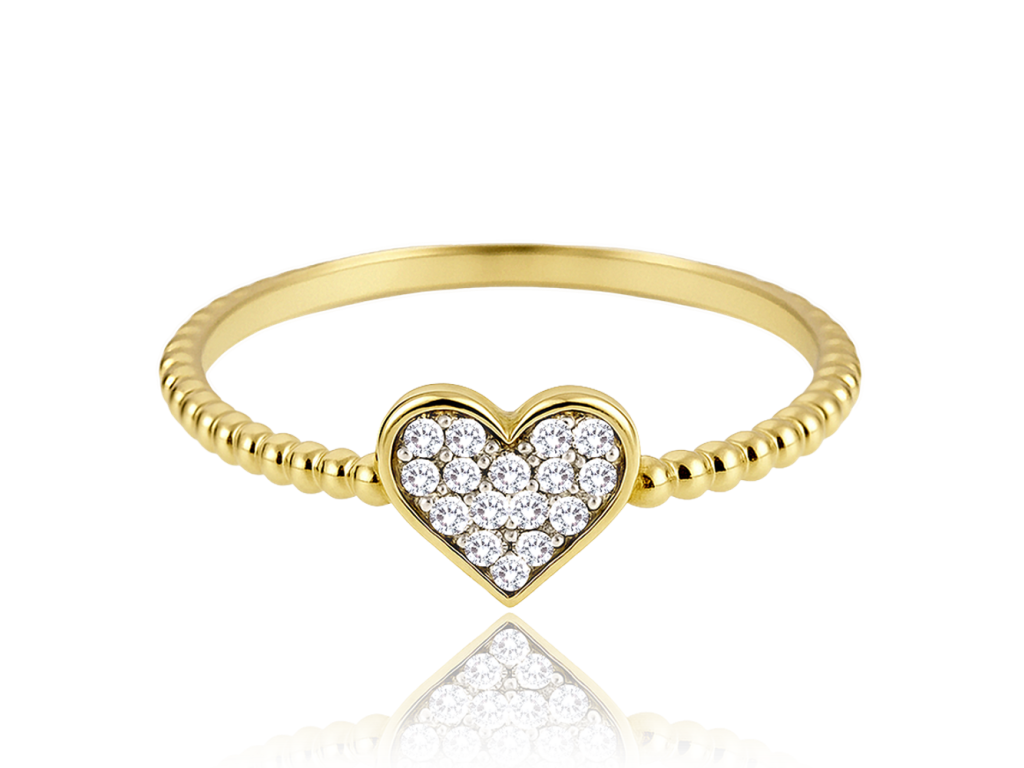 MINET Zlatý prsten srdíčko s bílými zirkony Au 585/1000 vel. 50 - 1,10g